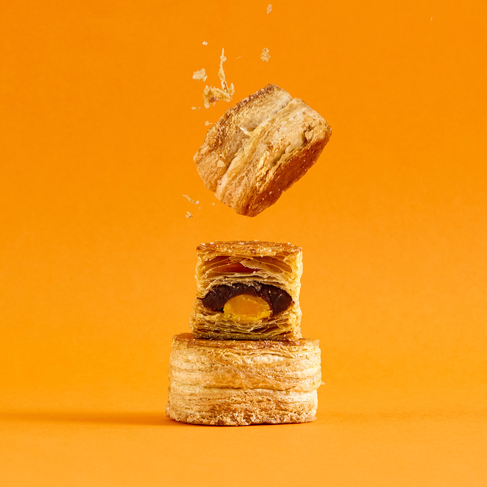 《翻轉酥》嚴選高級法國麵粉與荷蘭皇家奶油,餅皮經長時間低溫熟成與精準烘烤,造就輕盈酥鬆、卻不乾易碎的理想層次。